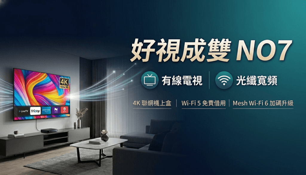 想要同時享受穩定光纖上網與豐富有線電視頻道嗎?「好視成雙 NO7」為您量身打造最高 CP 值的居家娛樂組合!