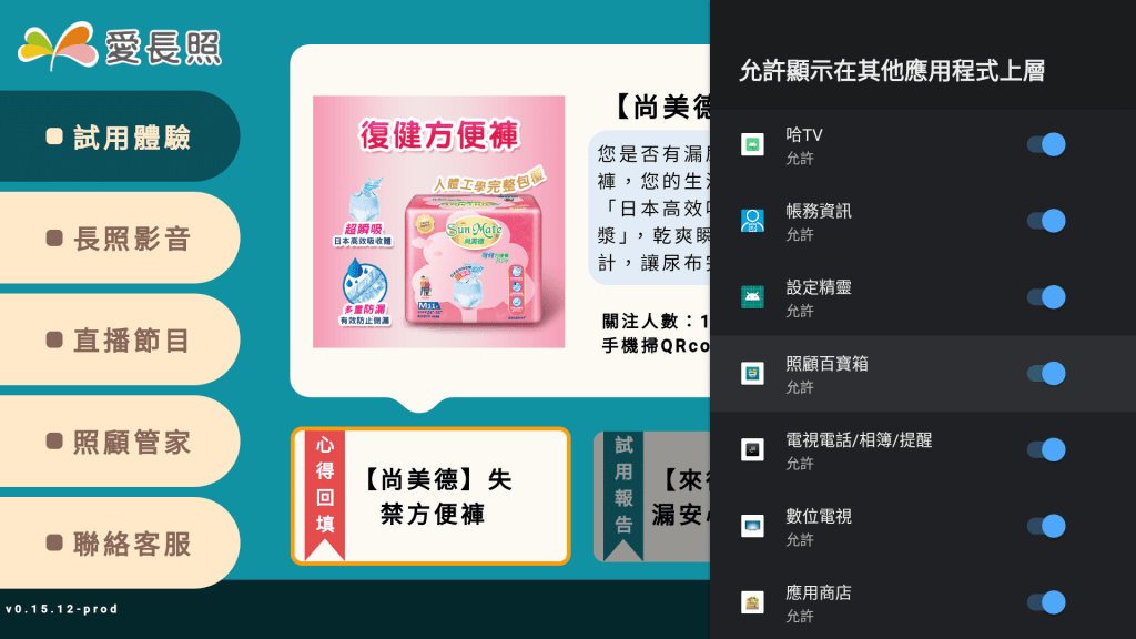 2-1.「愛長照APP」自動登入機上盒截圖畫面